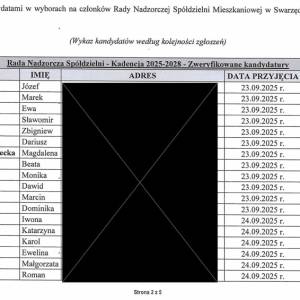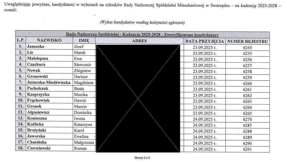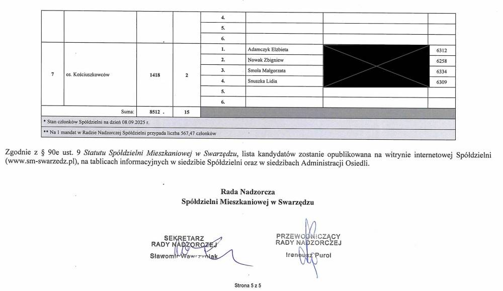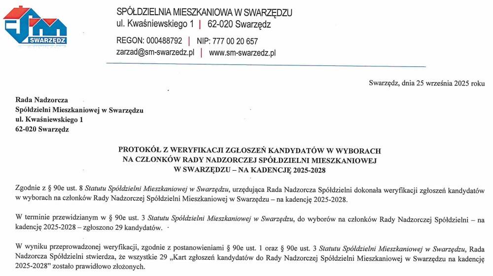 Lista kandydatów na członków Rady Nadzorczej Spółdzielni Mieszkaniowej w Swarzędzu w kadencji 2025-2028 dostępna jest poniżej.
